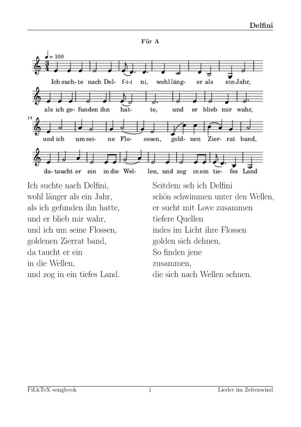 Das Liederbuch zum Drucken