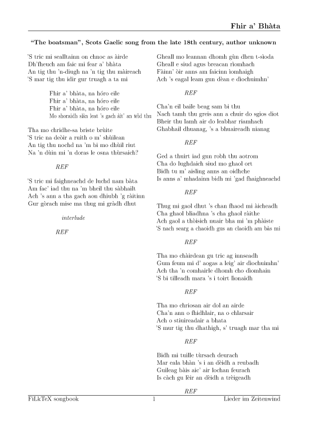 Um einzelne Lieder als Liedblätter zu erstellen, ruft statt bash